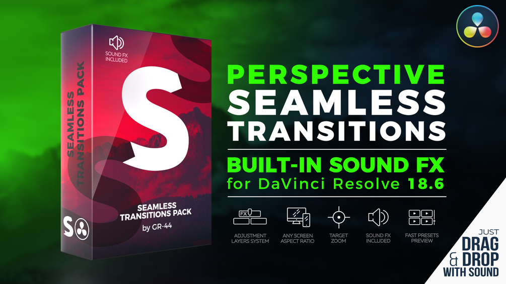 • Works in DaVinci Resolve Studio 18.6 (Most of transitions work in the free version of DaVinci Resolve 18.6 as well)
